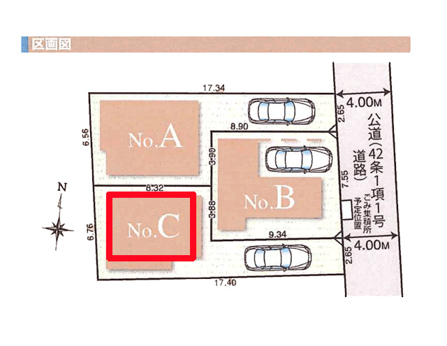 ◆A号棟とC号棟は路地状敷地 そこが駐車スペースとなります。