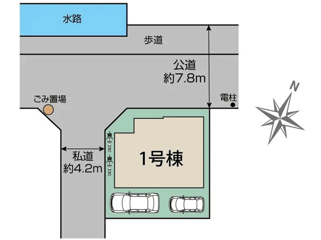 | 接道状況 | 北西 6.7m(幅員) 公道 南西 4.2m(幅員) 私道 |