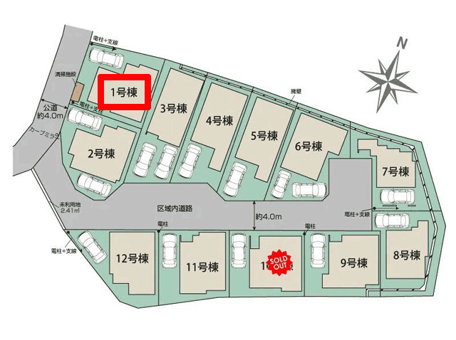 | 特色 | 〔仲介手数料20%OFF!〕、1号棟、(全12棟)、駐車場、公営水道、公共本下水、都市ガス、対面式キッチン、床下収納、食器洗い乾燥機、浴室換気乾燥機、土間収納、室内物干し、EV車用充電プラグ装備、日当たり良好、住環境良好、住宅性能表示対応、制震ダンパー、 |