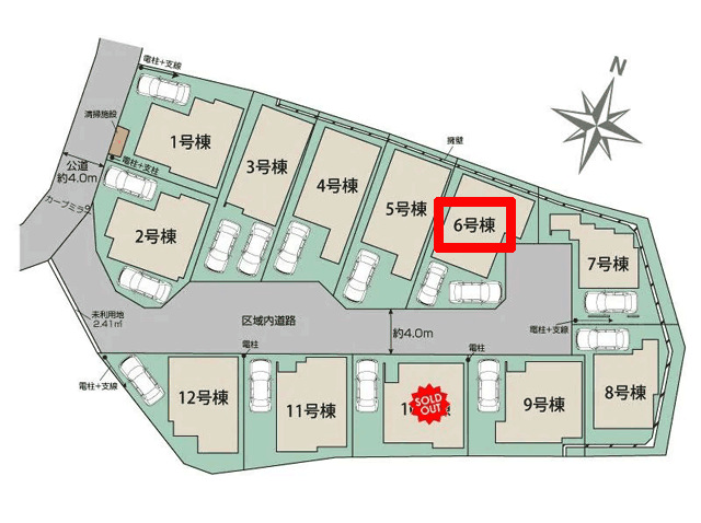 ◆6号棟は敷地が広い!32.8坪あるので駐車スペース2台可能。(1台は小型車)